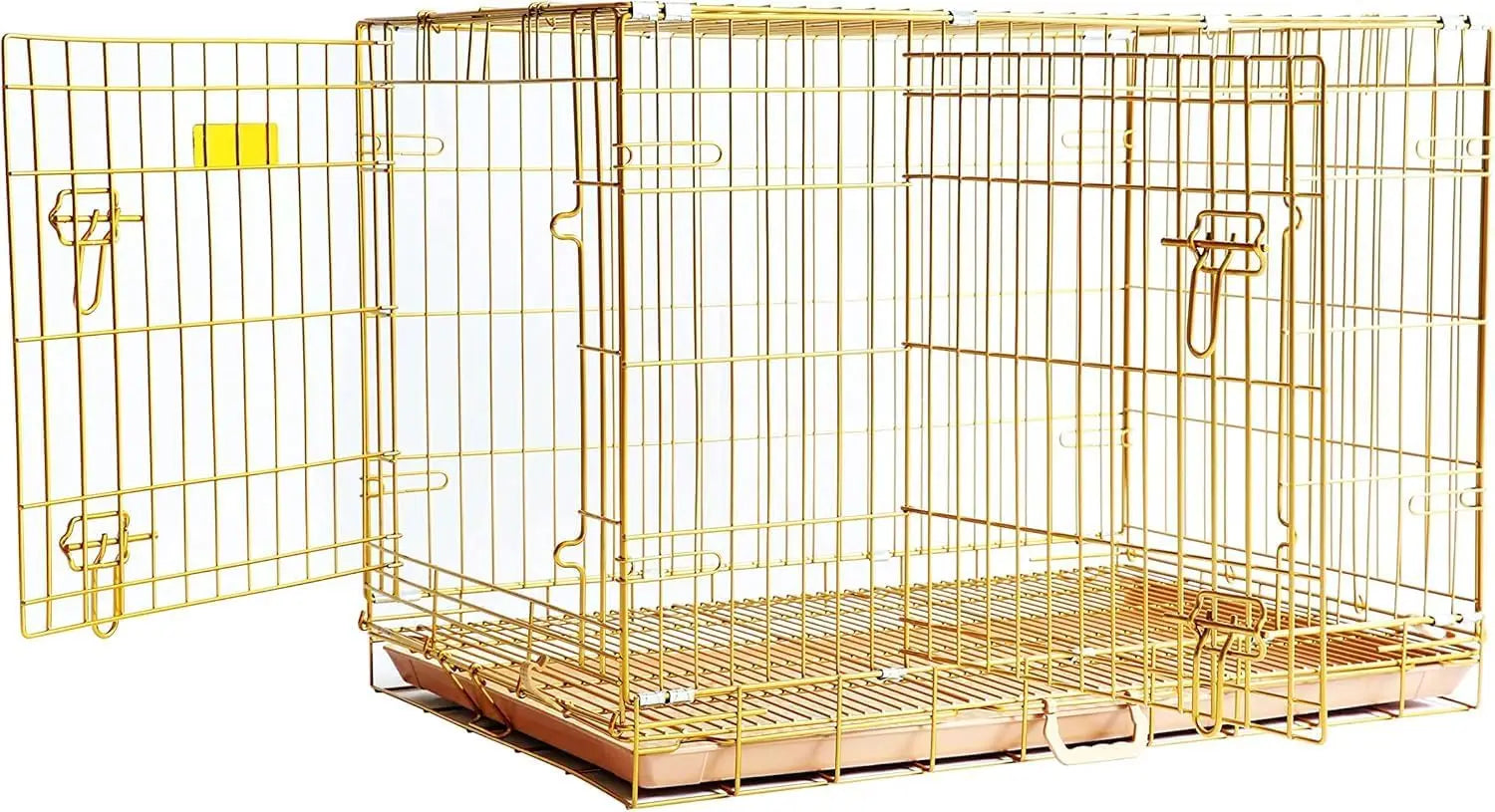 - Golden & Thickened Crate: Made of premium metal wire with a rose gold nano coating, this exclusive medium dog crate extends its life and provides resistance against rust, fading, peeling, and scratches. Not easy to bend or bite. The comfortable, den-like space provides enough ventilation and visibility. Don't let your dog feel cooped up. Reduces cage anxiety and chewing in your dog